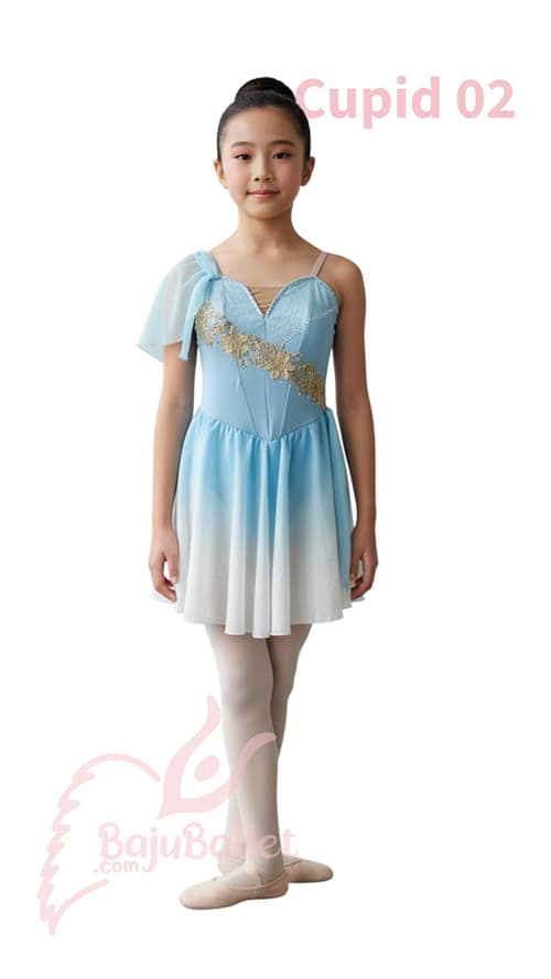 Cupid 02 warna Ombre Blue yang lembut dengan chiffon ringan, menonjolkan karakter cinta, ringan, dan magis dalam balet Don Quixote Ballet.