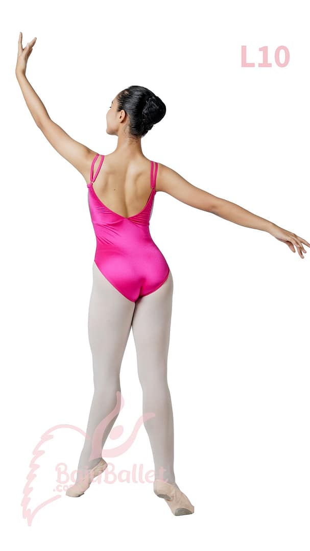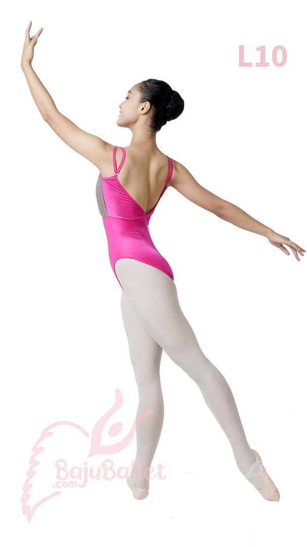 L10 desainnya memadukan tile jaring yang warnanya kontras dengan warna leotard, dan double strap yang menghubungkan bagian kiri dan kanan.