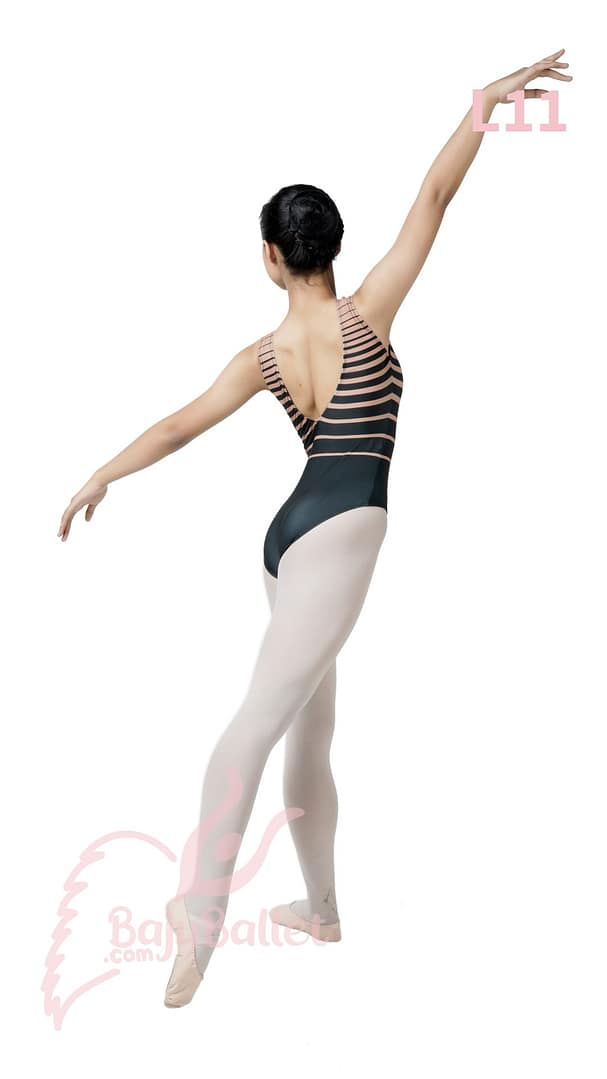 L11 adalah leotard dengan motif print garis-garis horizontal dari BajuBallet.com. Desainnya simple dan klasik, cocok untuk siapa saja.