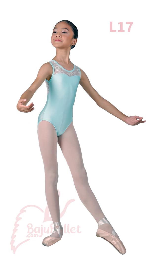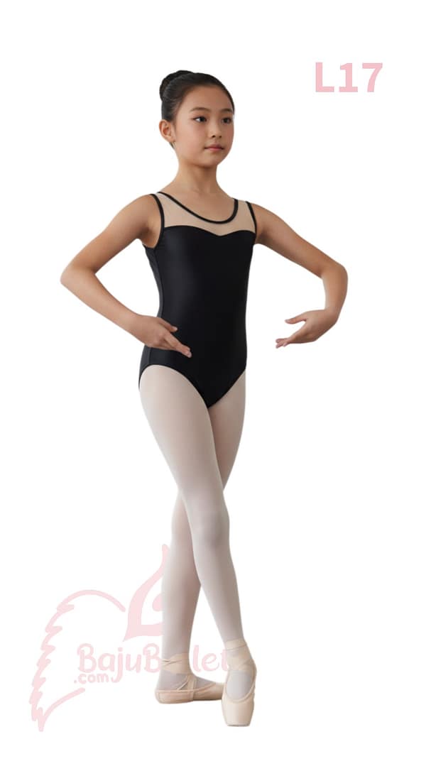 L17 adalah leotard Ballet Tank Top dengan kain renda seperti bentuk hati di bagian dada atas, terus ke bahu lalu ke punggung. Simple dan elegan.