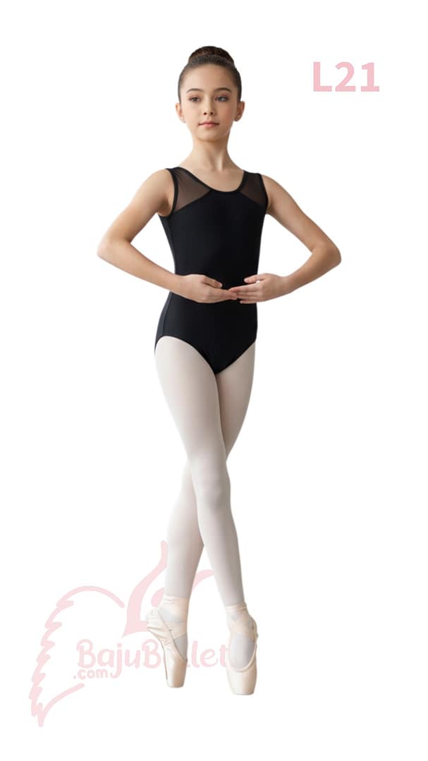 L21 adalah Leotard dari BajuBallet.com dengan desain Low V-Back menggunakan kain jaring (mesh) yang nyaman; kulit lebih mudah bernafas.