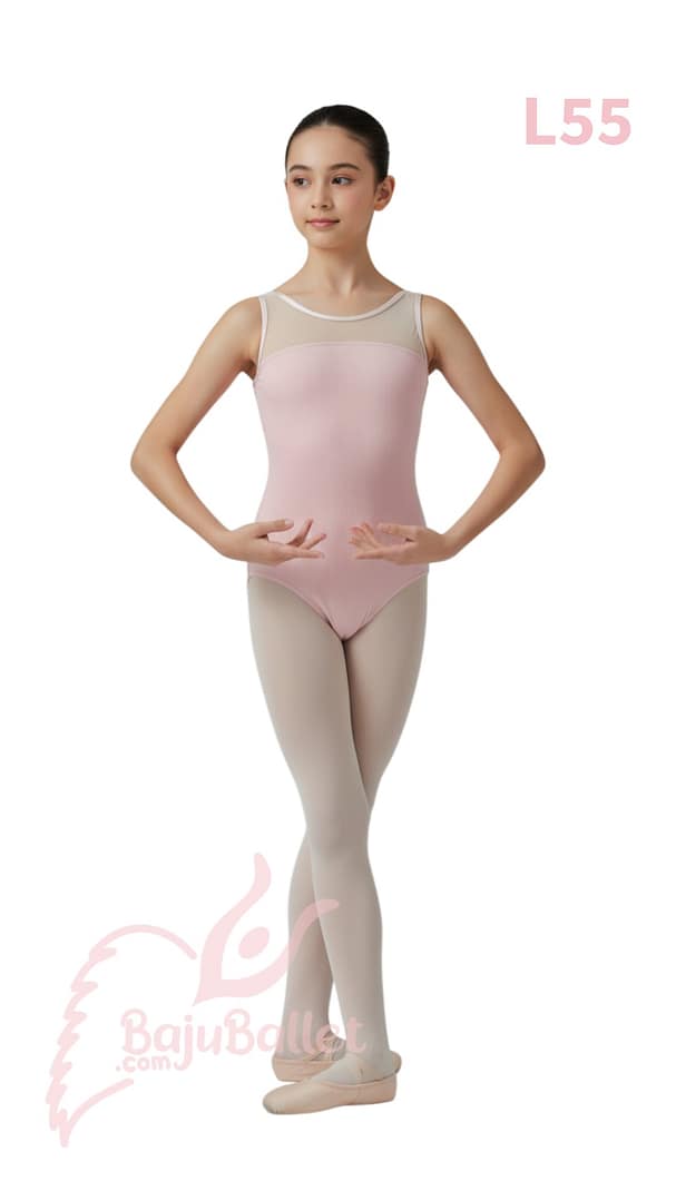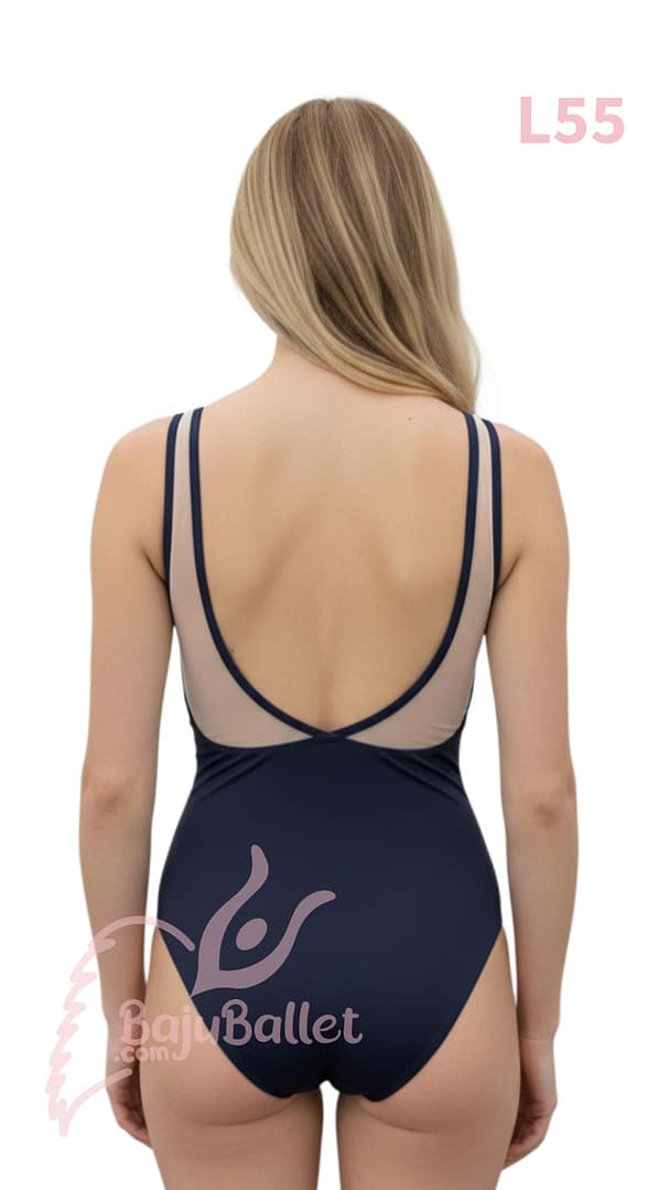 L55 adalah leotard Ballet yang menggunakan mesh (kain jaring) di dada, bahu dan terus ke punggung yang berdesain low back.