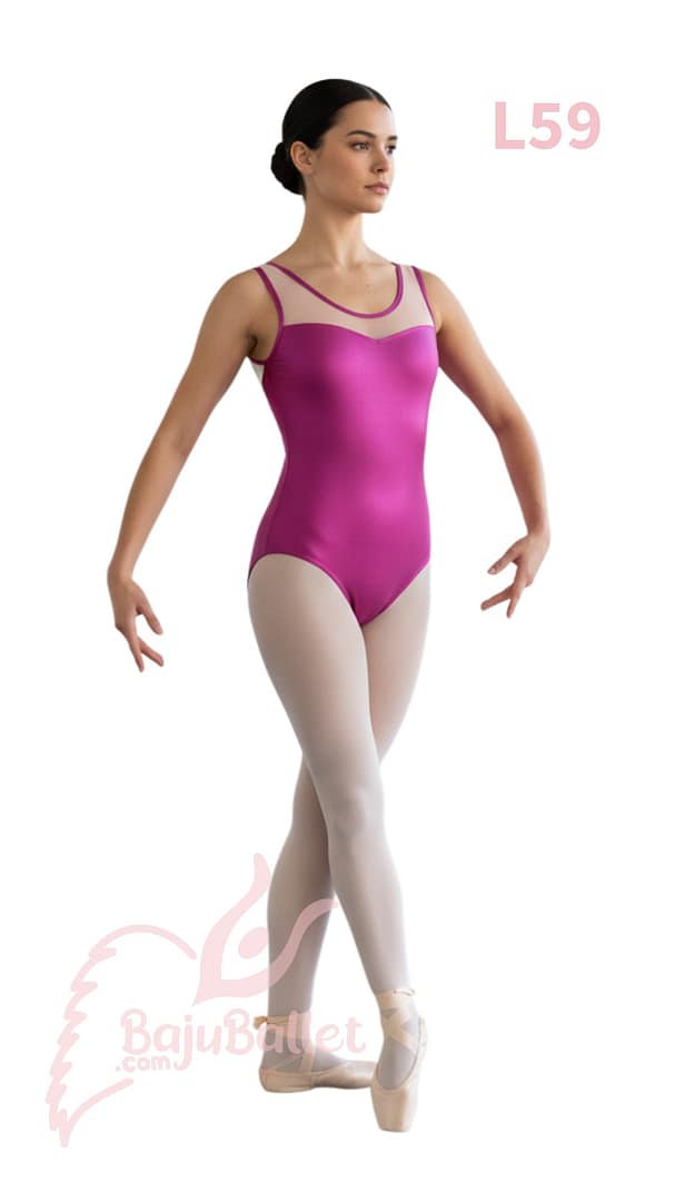 L59 adalah leotard dengan bagian belakang berbentuk V besar, bagian dada dan punggung menggunakan kain mesh. Salah satu Best Seller.