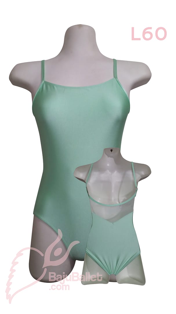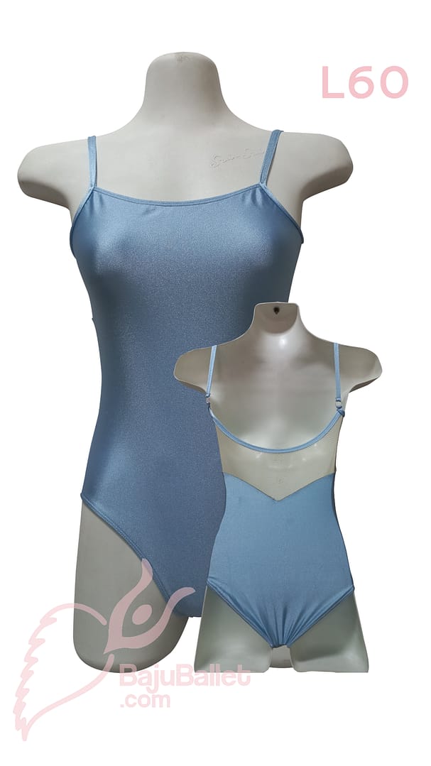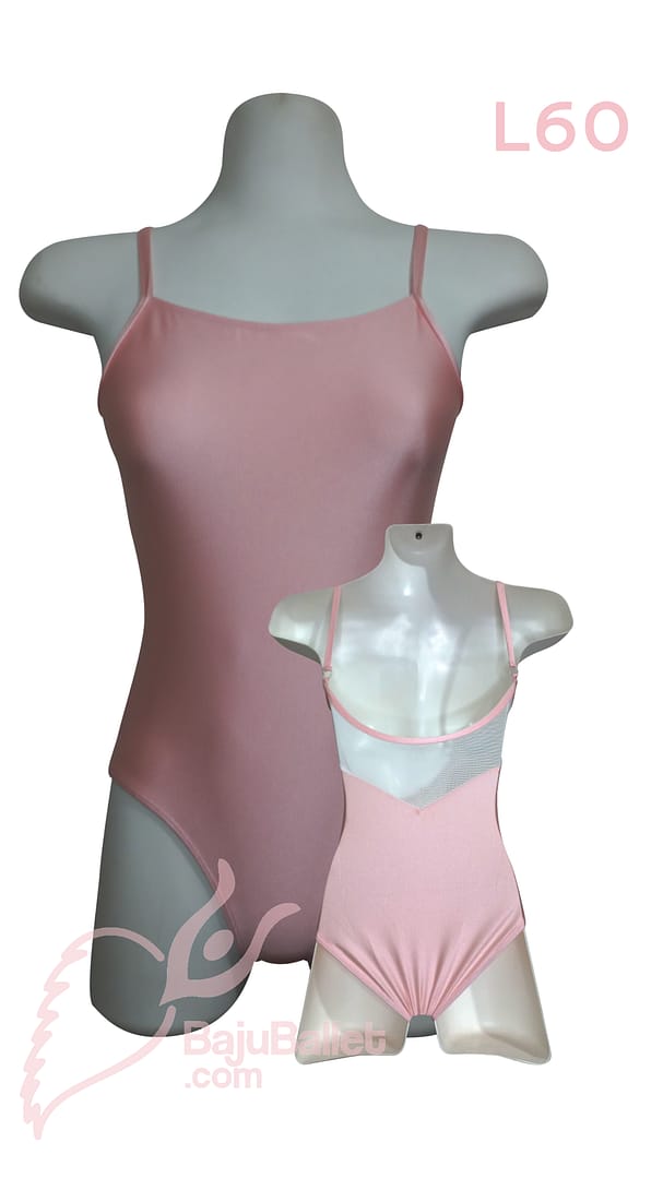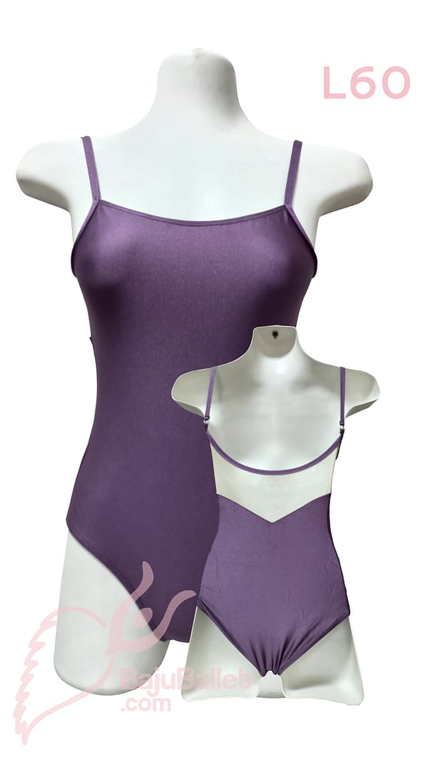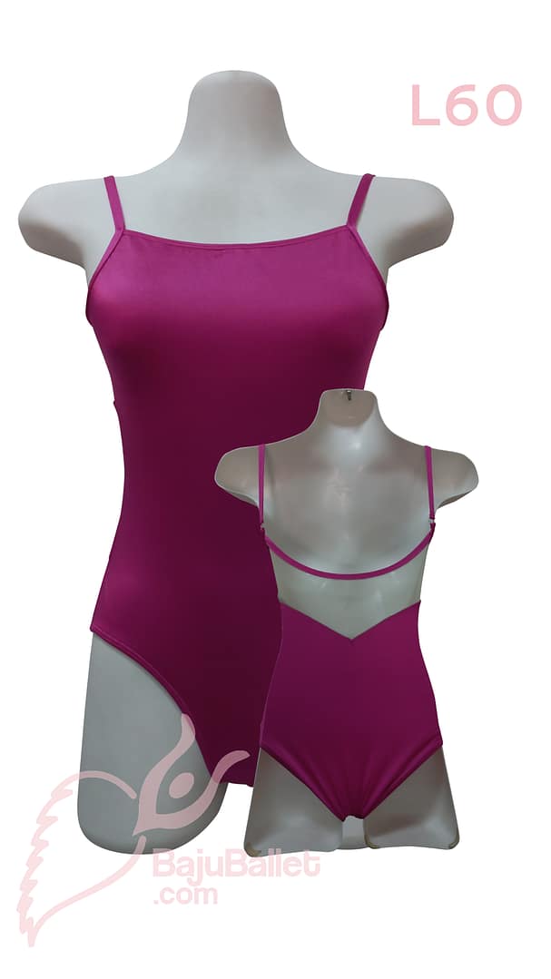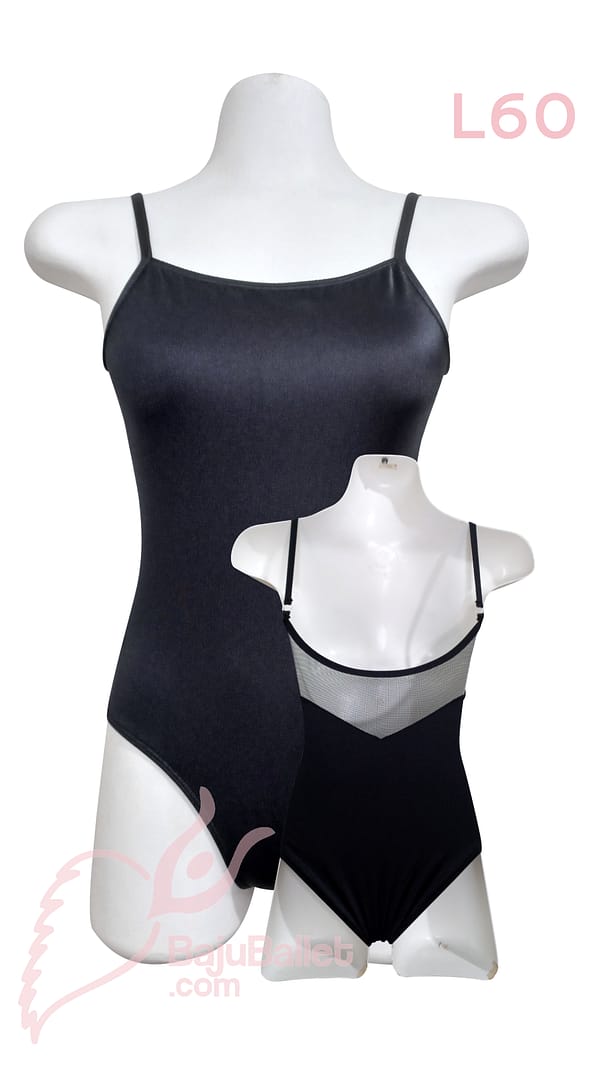 L60 adalah Baju Ballet berbentuk Leotard yang memiliki Classic Look dengan desain Spaghetti Strap dan punggung kain mesh yang berbentuk V.
