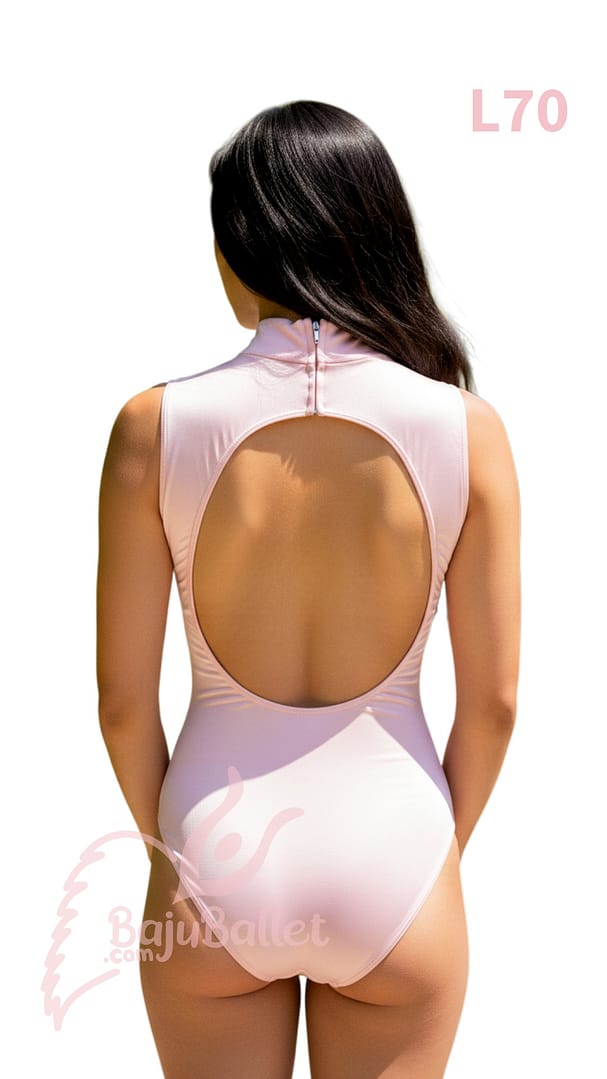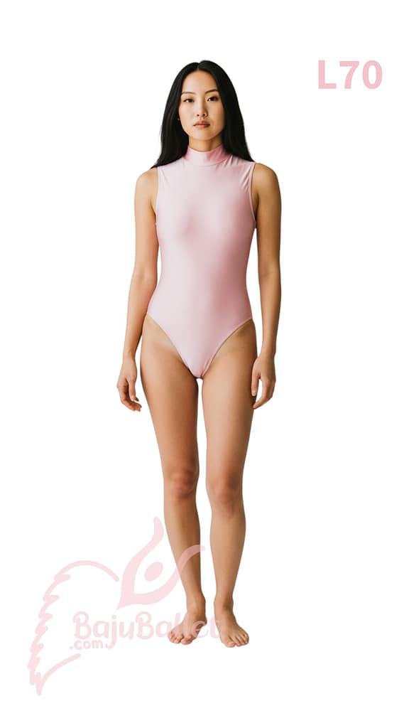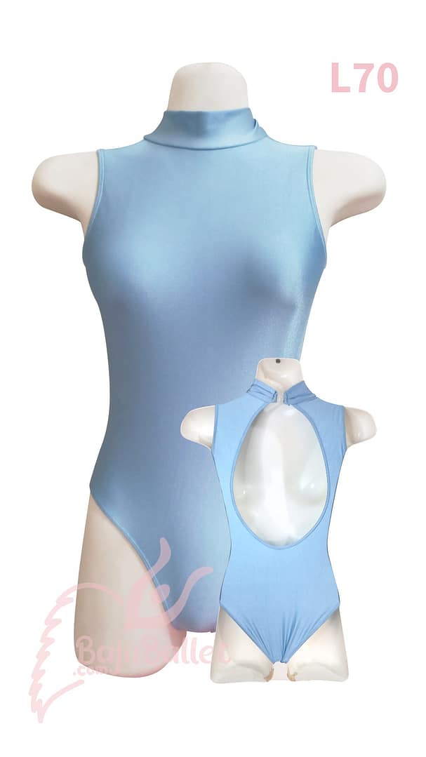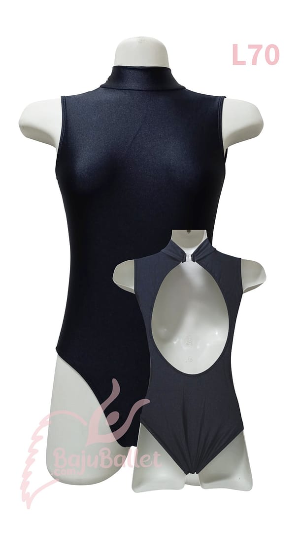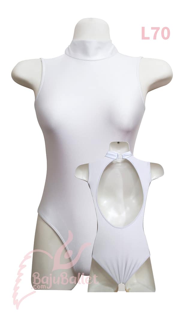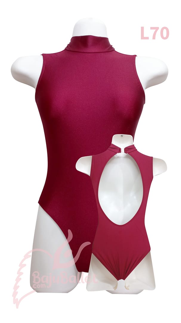 L70 adalah leotard elegan dengan desain Turtleneck dan Open Keyhole Back. Sangat cocok dipakai bersamaan dengan rok panjang yang berkibar.