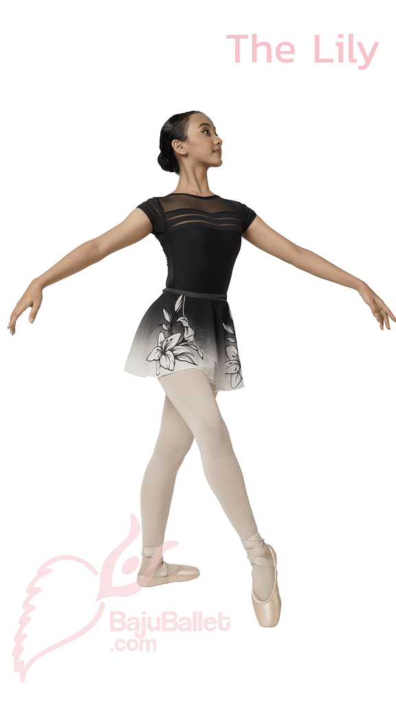 The Lily adalah rok Ballet circular dari bahan chiffon print dengan model wrap skirt. Produk ini terinspirasi oleh warna bunga Lily (Bakung)